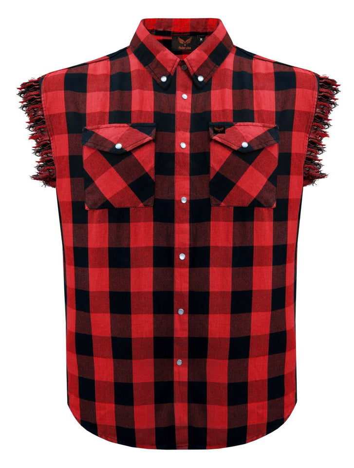 Dream Apparel Men's Sleeveless Flannel Shirt Black & Red Sleek Design Cotton Shirt Frayed Sleeves