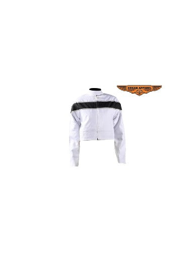 Women's White Lightweight Textile Jacket W/ Black Stripe