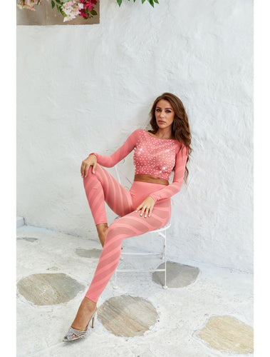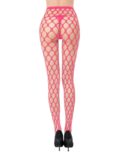 Dream Apparel Women Rhinestones Lingerie Hot Pink Fishnet Mesh Bling Bling Stockings Sexy Pantyhose