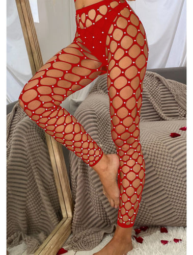 Dream Apparel Women's Rhinestones Lingerie Red Fishnet Mesh Bling Bling Stockings Sexy Pantyhose