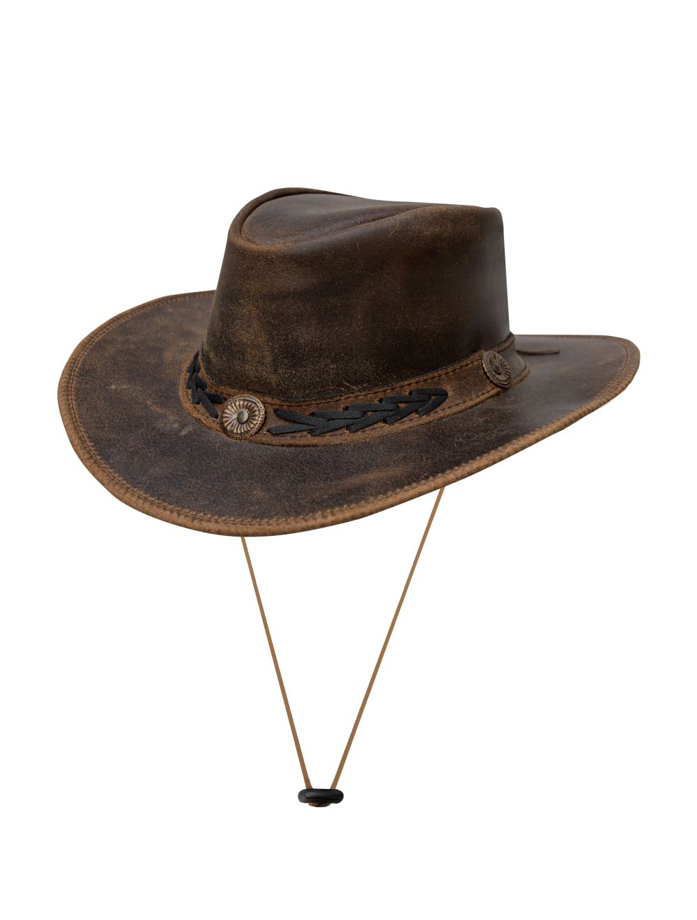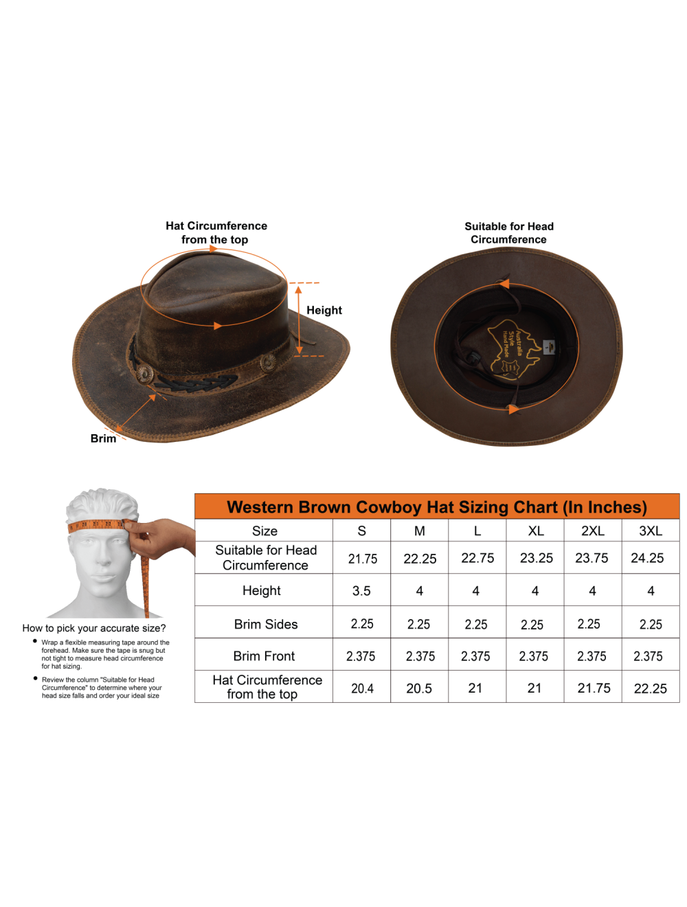 - This brown western cowboy hat is crafted of premium leather. The timeless fashion and iconic brown color are both comfortable as well as sturdy. Our cowboy hats aren't just for show-through; they're also made for actual cowboys. Wear this as a summertime cowboy hat, in nightclubs, or as informal everyday headgear.