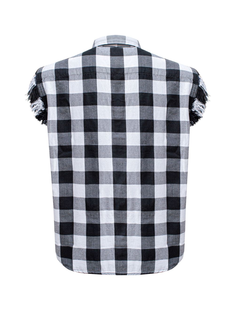 Dream Apparel Men's Sleeveless Flannel Shirt Black & White Sleek Design Cotton Shirt Frayed Sleeves