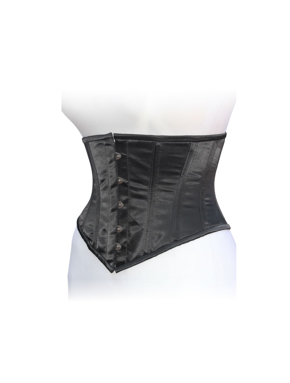 - Front fastening with rust-free busk set Ties in the back with a strong Lace/Ribbon at the waist.