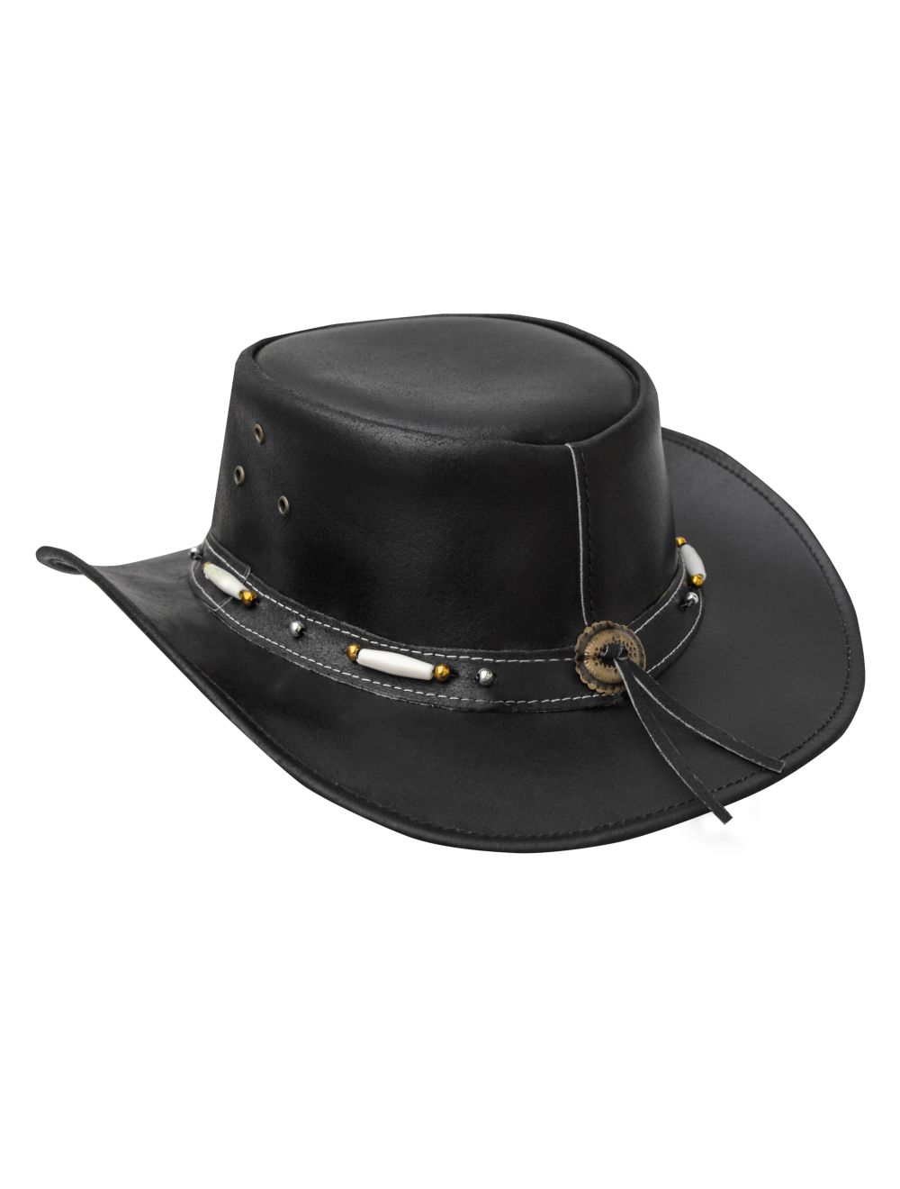 - This black western cowboy hat is crafted of excellent premium leather. The timeless fashion and iconic color are both comfortable and sturdy. Our cowboy hats aren't just for show-through; they're also made for actual cowboys. Wear this as a summertime cowboy hat, in nightclubs, or as informal everyday headgear.